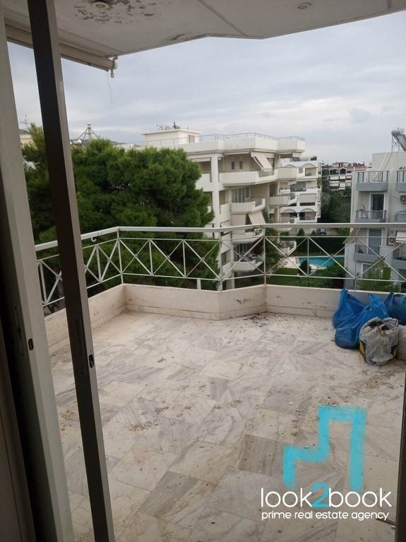 Glyfada, Pyrnari, Apartment For Rent, 81 sq.m., Floor: 4th floor, penthouse, panoramic sea view, consisting of: living room with fireplace, 2 bedrooms, kitchen,, bathroom, wc, large veranda, security door, double glass, oil heating, solar water heater, Price: 1200 €. Look2Book, Tel. Contact: 2108940006, email: info@look2book.gr code :: 922