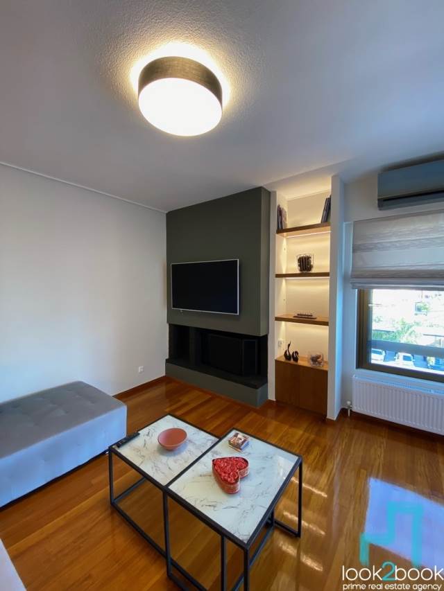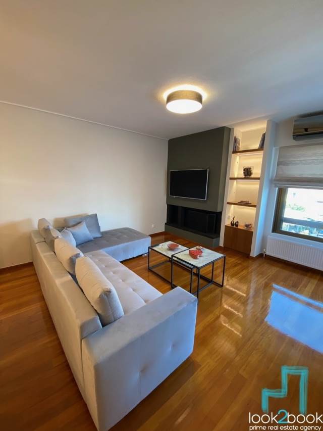 Glyfada, Center – 2nd floor apartment, 130 sq.m., fully renovated and furnished. It consists of a living room with energy fireplace, fully equipped kitchen, 3 bedrooms (1 master) and 2 bathrooms. It has autonomous natural gas heating, air conditioning, boiler, double glazing, awnings, verandas, security door, alarm, video intercom and electrical appliances. The property is luxurious, bright and offers a view of a square. It also has an elevator.Price: 3,400€, Code: 19508, Look2Book Tel: 2108940006, e-mail: info@look2book.gr, website: www.look2book.gr