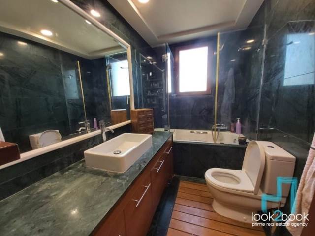 In the area of Voula, a luxurious furnished apartment with a shared swimming pool, 200 sq m, 2nd floor, is available for rent. It was built in 2010 and consists of: living room with fireplace, kitchen, 3 bedrooms (1 Master), bathroom and WC. The heating is autonomous oil and it has a parking space in the basement, a storage room and an independent studio on the ground floor. Price: 2,800€, Ref.: 38930, Look2Book Tel: 2108940006, Mobile: 6944991499, e-mail: info@look2book.gr, website: www.look2book.gr