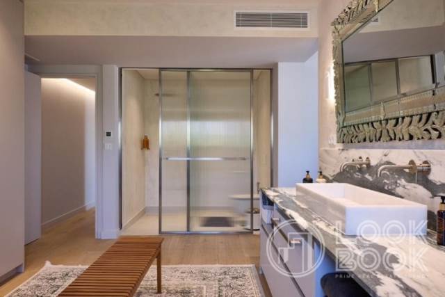 Glyfada, near the Ellinikon Project, luxurious 2-level maisonette, total area 232.81 sq.m. (1st floor 130.24 sq.m. and 2nd floor 102.57 sq.m.), built in 2024, with modern design and high quality specifications. The property has a main terrace with a private pool of 11.90 sq.m. and unobstructed views of the Hellinikon, while it also includes a storage room of 19 sq.m. and two parking spaces. In the communal garden there is a large swimming pool, while a gym area is also provided. It is developed on two levels and is served by an internal elevator, making it fully accessible (handicap friendly). On the 1st floor we find a master bedroom with en suite bathroom and direct access to the terrace with the pool, open plan kitchen, dining room, spacious living room with fireplace, guest WC as well as laundry/storage room. On the 2nd floor there is a large master bedroom with walk-in closet, private bathroom and its own terrace, an additional bedroom with bathroom and access to a terrace, as well as an open office space with views of the Hellinikon and the living room. The apartment has underfloor heating with natural gas and a smart home system. It is fully furnished with furniture from MIA Collections and equipped with modern electrical appliances and kitchen equipment, offering a complete and particularly elegant result.Price: 2.380.000€, Code: 58021, Look2Book Tel: 2108940006, e-mail: info@look2book.gr, website: www.look2book.gr